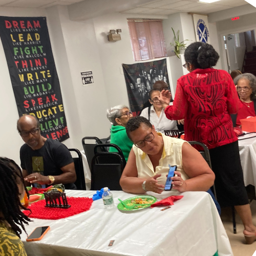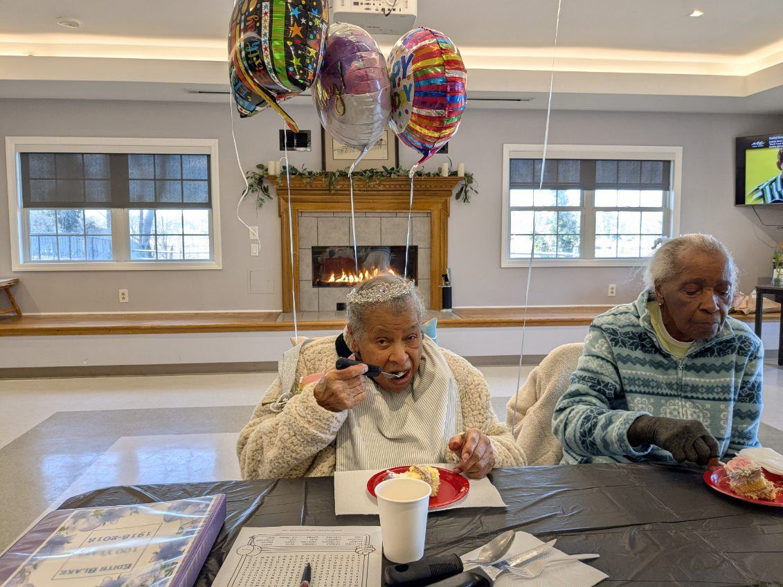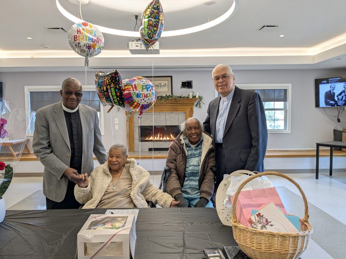 Mother Edith Blake celebration her 107th birthday. Some guests for all over, near and far. Her family members with nephew and wife from Virginia, Mayor of Red Bank and Mayor of Shrewsbury. Rev. Rosheuvel, Rev. Sang and members of St. Thomas. Senior center members from Red Band and Tinton Falls and so many others present on this very special occasion.